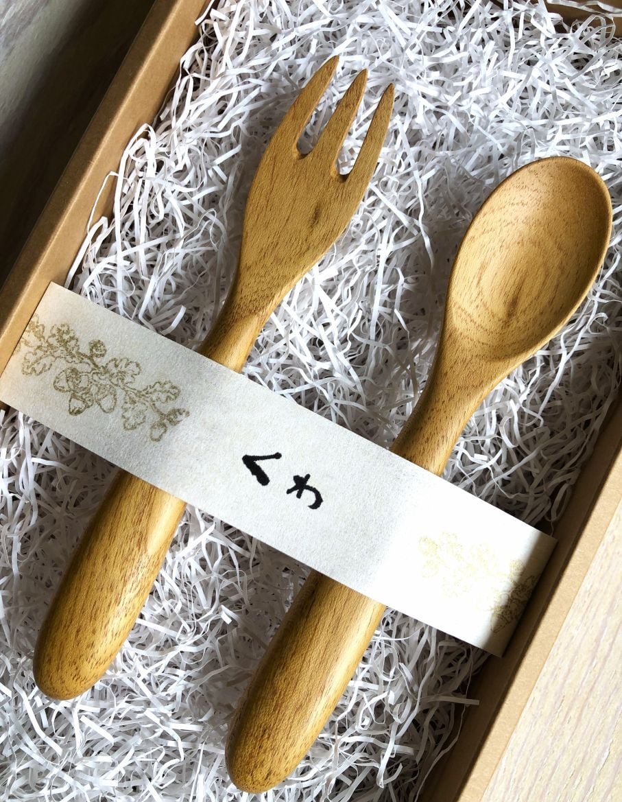 ご出産祝い、お誕生日のお祝いに人気の子どもスプーン&フォークセットです。