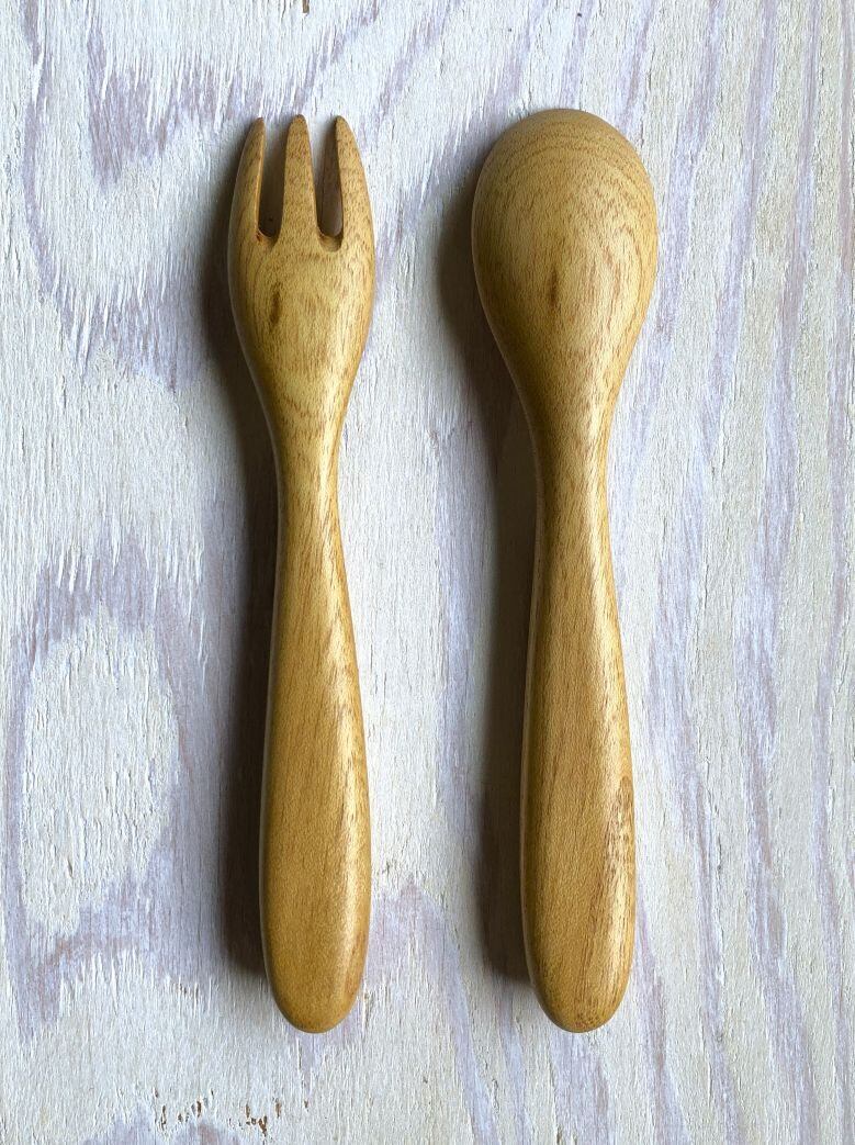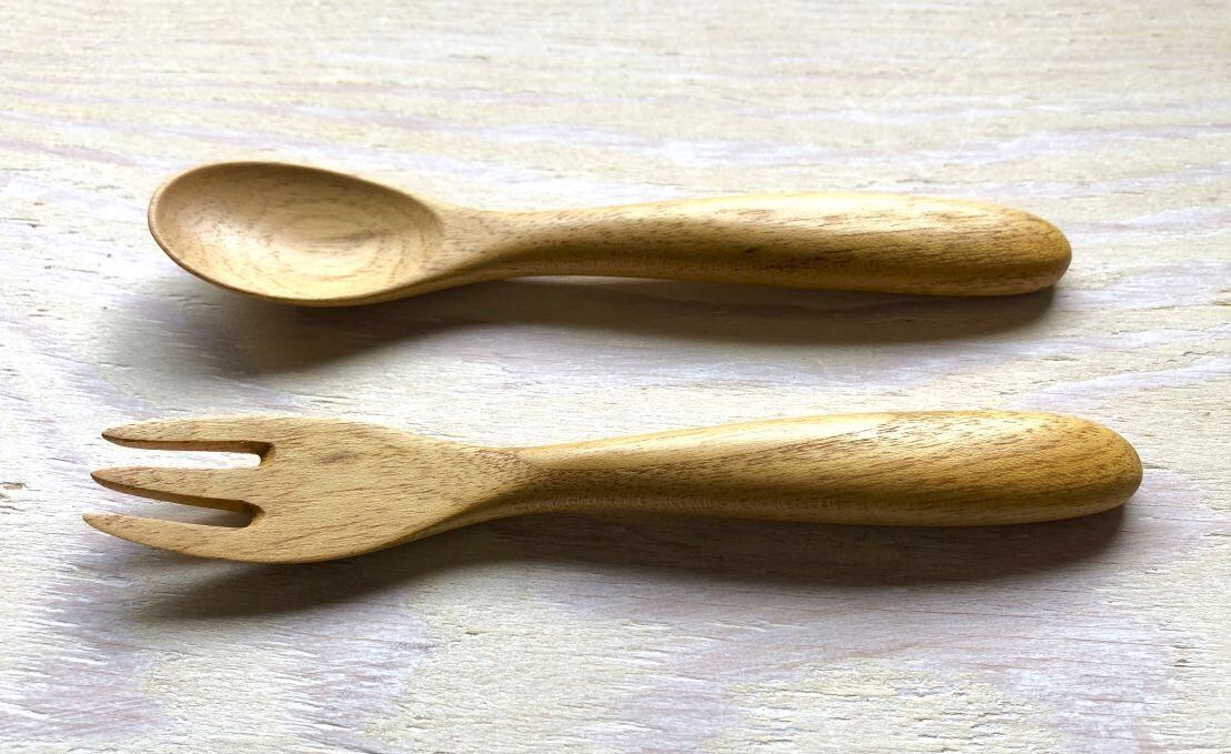 2歳~大きくなっても使えるまっすぐなシンプルタイプのスプーンとフォークです。